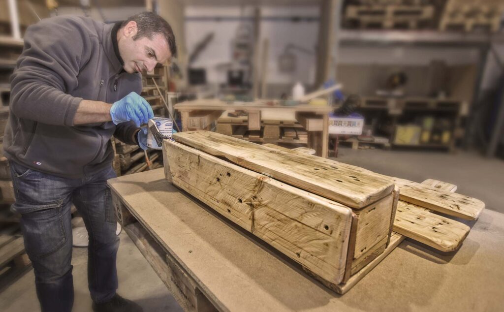 Con particolare attenzione all’ambiente e alla sostenibilità, si basa su lavorazioni manuali e su misura rigenerando materiali usati e recuperati per creare imballi e strutture in legno per la logistica e la